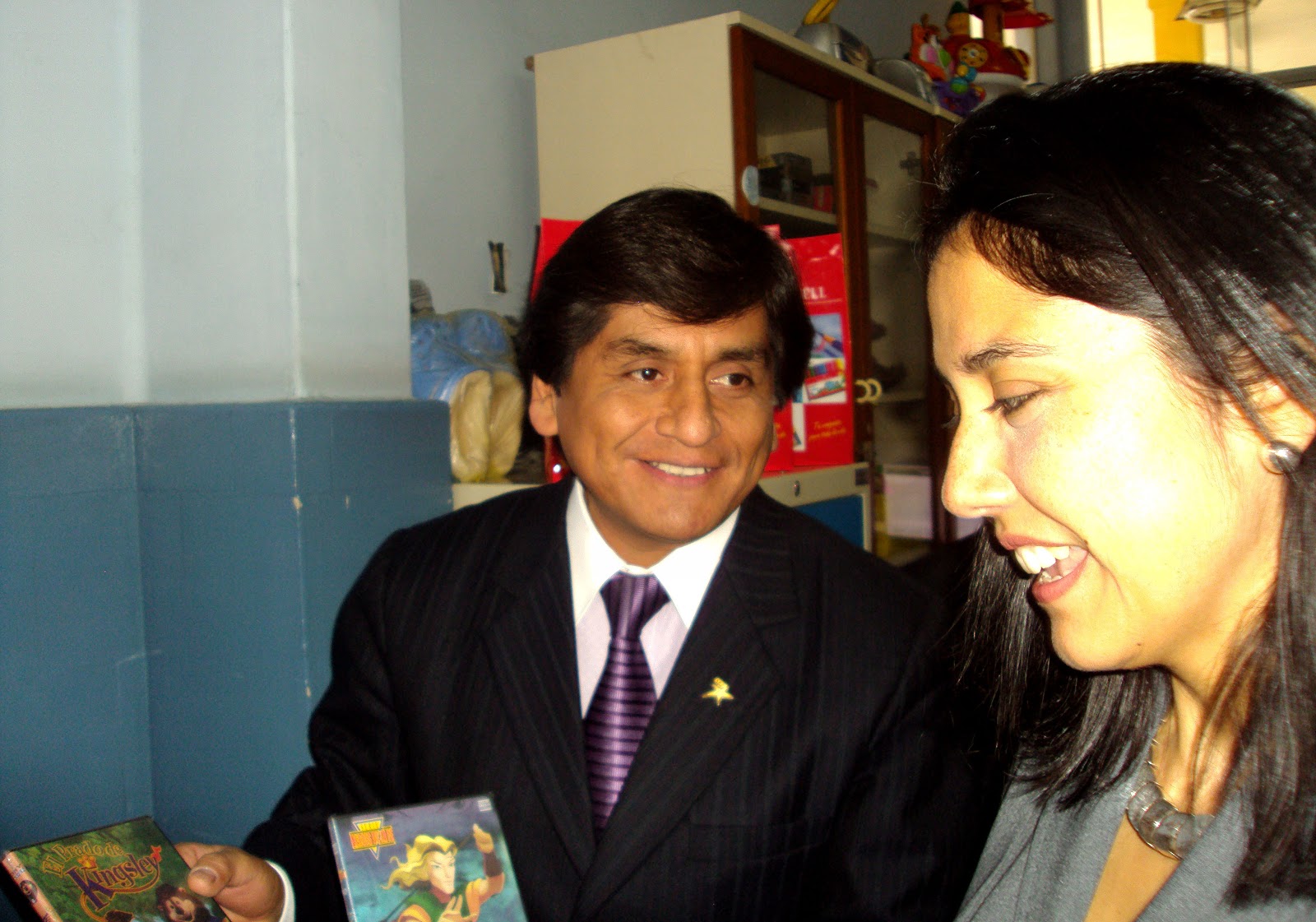 NADINE HEREDIA ENTREGÓ MATERIAL BIBLICO PARA NIÑOS La Primera Dama de la Nación, Nadine Heredia, agradeció personalmente al Director Ejecutivo de la SBP, Dr. Roberto Miranda por el material lúdico y de valores que ayer entregó a los niños del Hospital del Niño. Los videos en DVD, cuadernos para colorear y el Arca de Noé en 3D, así como las Cartillas de Prevención contra el Abuso Sexual Infantil fueron entregados a los niños en los pabellones de niños con VIH y TBC, del Hospital del Niño .